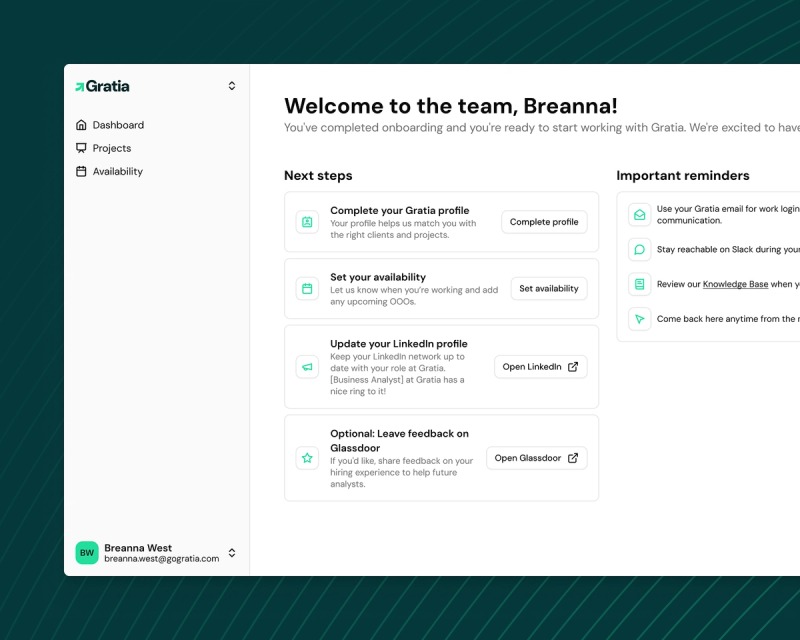 Complete your analyst profile with your skills, tools, and availability. Once it’s live, clients can review it when selecting analysts for project briefs. You’ll also join our analyst community spanning 20+ countries.